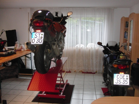 So was krieg ich auch noch. Hauptsächlich zum putzen der Mopeds, im Alter hat man es halt mit dem Bücken nicht mehr so. Wichtig ist wohl die Möglichkeit um das Vorderrad zu fixieren, außerdem wäre ein Scherenhub nicht schlecht. Herby